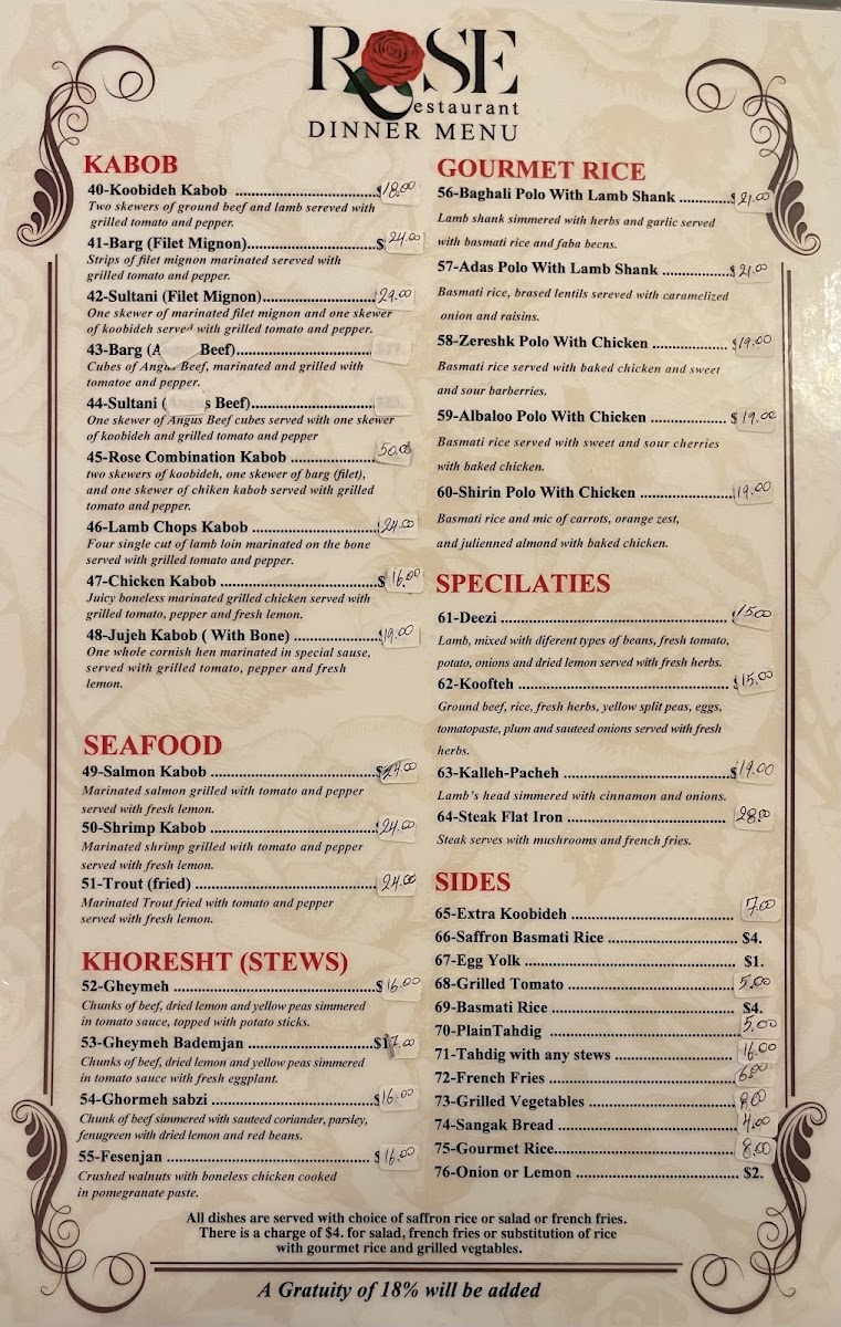 Rose Restaurant Menu